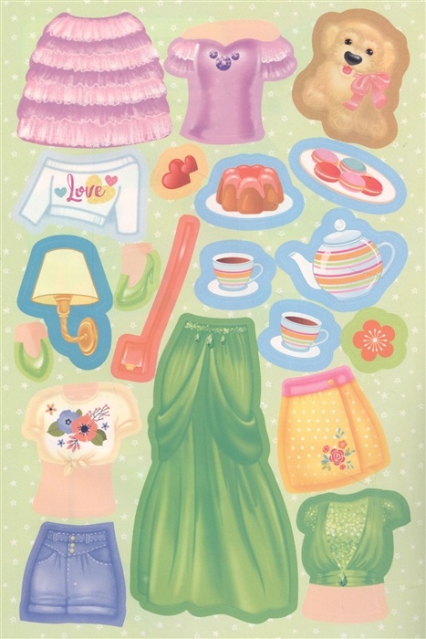 Перед тобой большой выбор наклеек с предметами одежды и обуви.