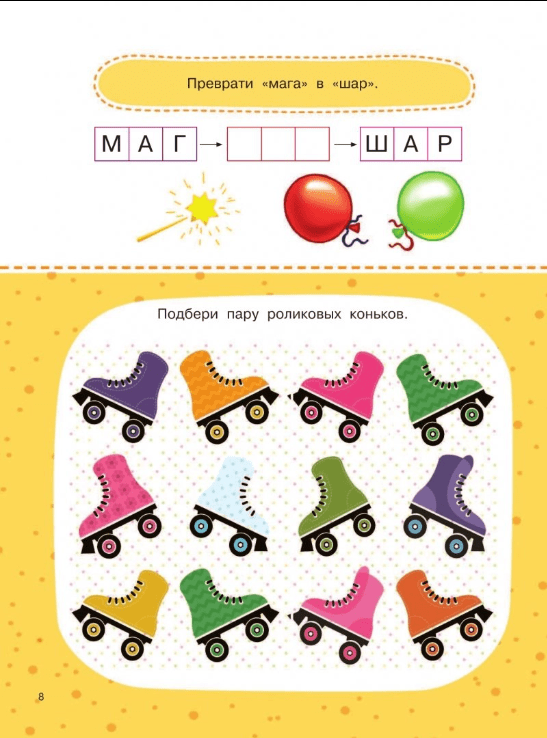 дить лабиринты, решать логические задачки. Такие интеллектуальные занятия развивают мышление, расширяют кругозор и словарный запас, тренируют память, внимание, наблюдательность, смекалку и творческие способности. Ребёнок откроет первую страницу — и уже не сможет оторваться! Для дошкольного возраста.